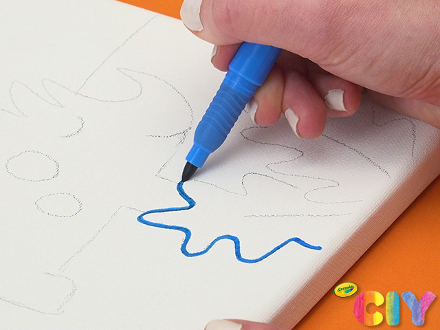 To create Crayon Melter Canvas Art: Sketch design on canvas in pencil. Trace over with permanent markers.