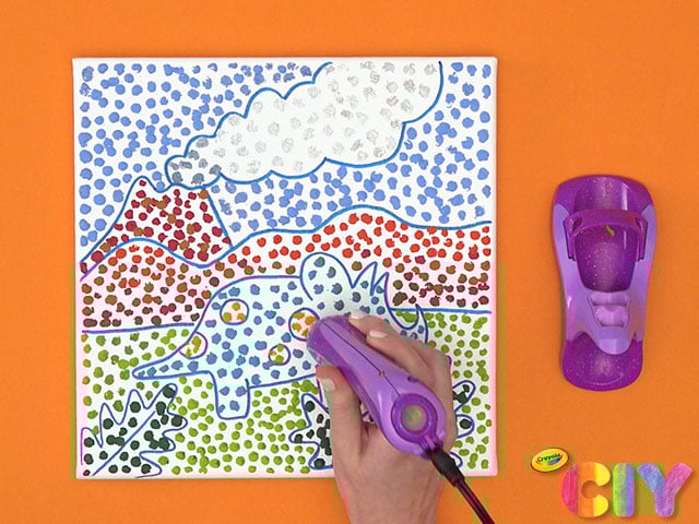 Hold Crayon Melter upright and press to canvas, creating dots in the open areas of the design until filled. Cool for 5 minutes.