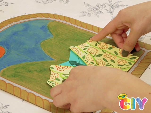 Paint a landscape or backdrop with Crayola Spill-Proof Washable Paint.