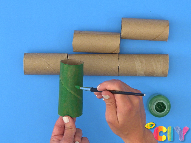 Cover paper rolls with paint. Dry 1–2 hours. Add second coat. Dry 1–2 hours.
