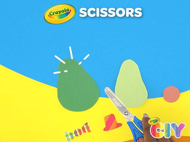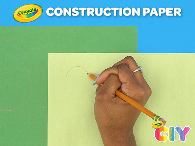 With a pencil, draw an avocado shape onto dark green Crayola Vivid Color Cardstock then draw a smaller avocado shape onto a light green piece of Crayola Construction Paper.