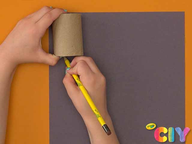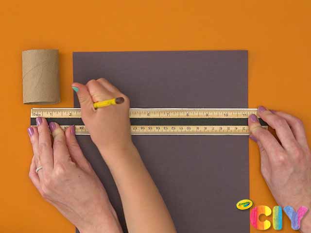 Place 1 paper towel roll section on black construction paper. Make tick mark to denote height.