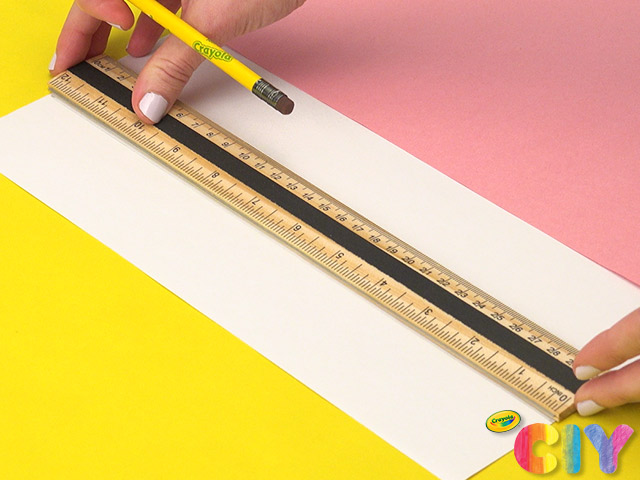 Using ruler and pencil, make tick mark on top and bottom of construction paper, 2” from left edge. Connect tick marks to create paper strip.