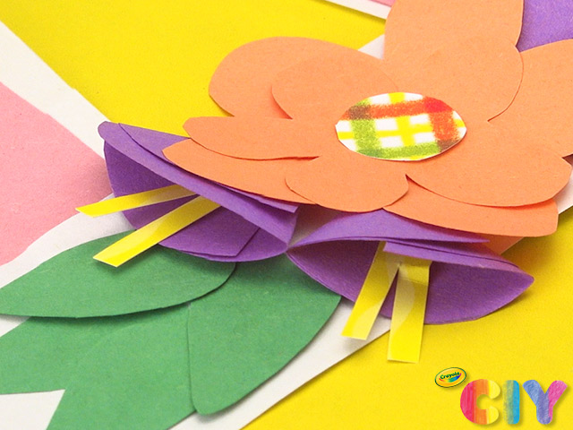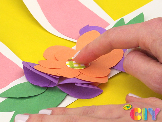 Cut out short, thin pieces of cardstock. Glue inside cone-shaped flowers. Let all glue steps dry 1–2 hours.