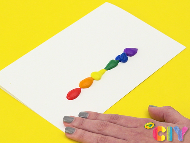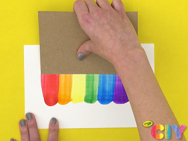 Hold scrap cardboard against paint and lightly drag against card in an upward motion to create candles. Dry 1–2 hours.