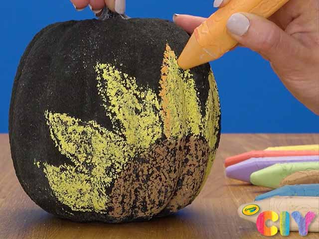 A blank space to decorate! Make DIY chalkboard paint, then use Crayola Sidewalk Chalk to add details to a faux pumpkin.