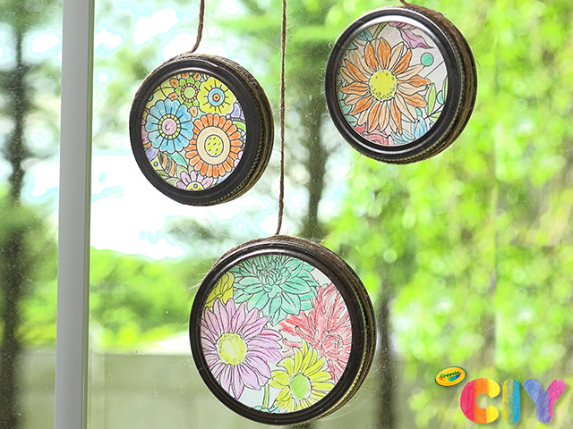 Catchin’ those rays! Let the light shine thru this homemade suncatcher made with our Free Coloring Page.