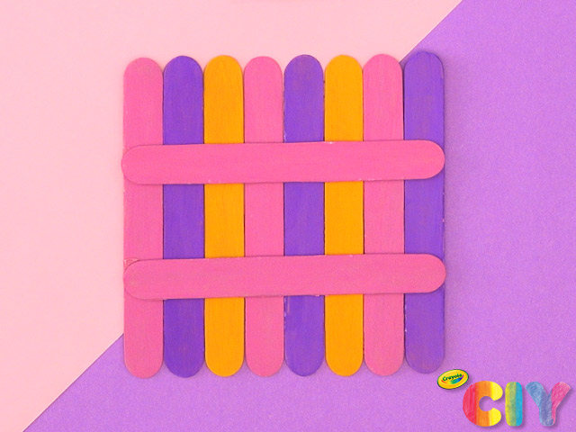 Group 8 craft sticks together side by side. Glue 2 craft sticks across the group to secure.