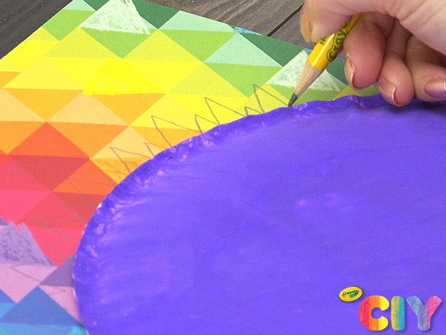 Using plate as guide, sketch dinosaur scales on cardstock. Cut out.