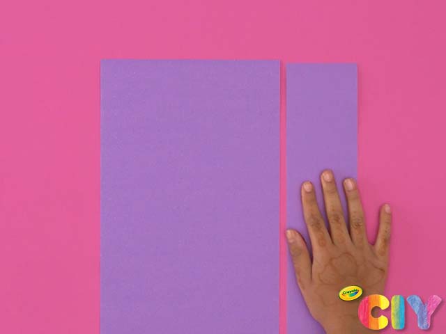 Cut construction paper to measure approximately 12”H x 6”W. Set extra construction paper strip aside.