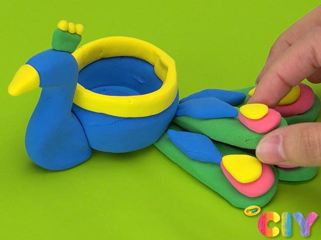 Press crown, feathers, beak, and rim against peacock head and body to connect. Let all Model Magic dry overnight.