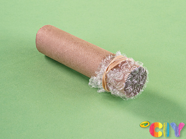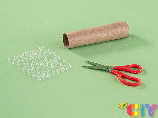 Cut out bubble wrap piece large enough to cover 1 end of paper towel roll.