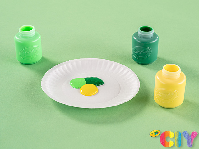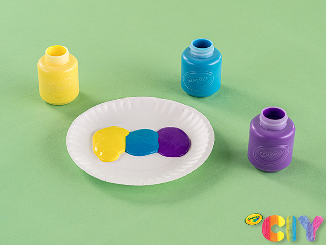 Pour 2–3 paint colors onto disposable plate so paints touch.
