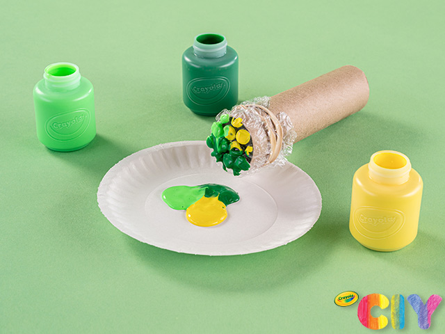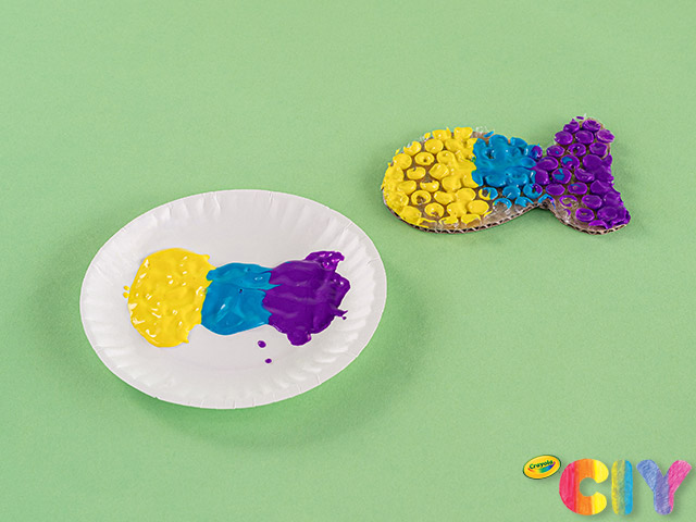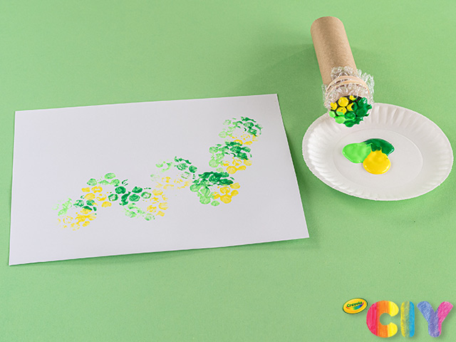 • When stamping with paper towel roll or scrap cardboard, lower gently into paint to preserve bubbly details.