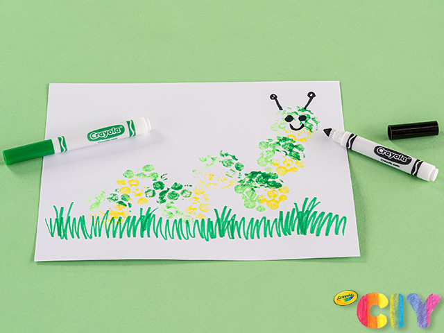 Gently stamp onto cardstock to create caterpillar body. Dry 1–2 hours.