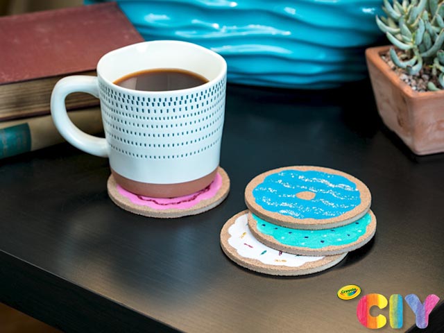 Donut worry, be crafty! Create & decorate a-dough-rable DIY coasters as part of this easy donut craft.