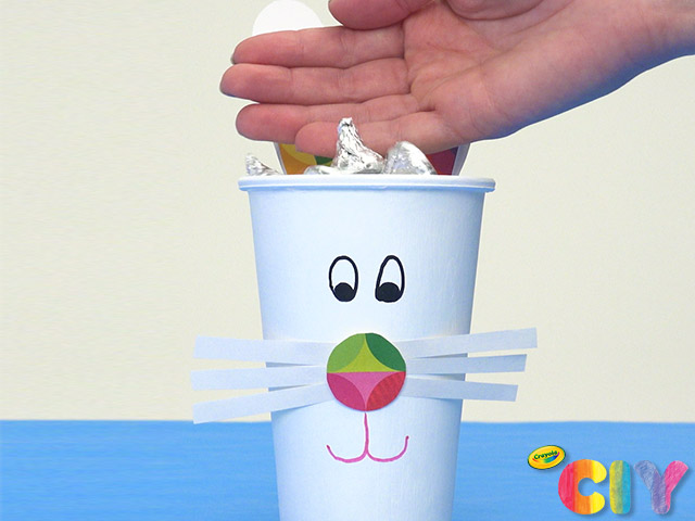 Simply ear-resistible! Turn a plastic cup into an adorable bunny candy holder (how sweet!) with this easy Easter craft for kids.