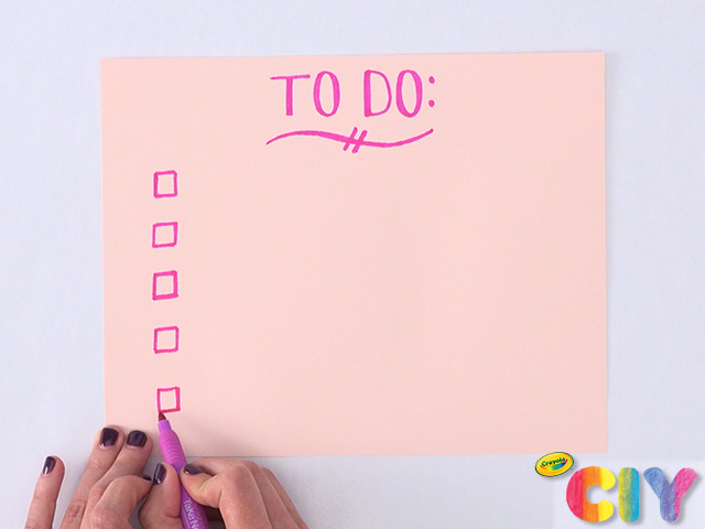 To create a checklist frame: Use permanent marker and write “To Do” at the top of the cardstock. Add check boxes down the left side margin.