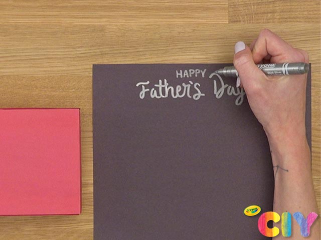 Write Father’s Day message on construction paper with metallic markers. Cut out.