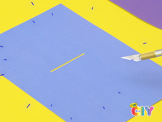 With adult assistance, cut a small slit in the rectangular piece of cardstock.