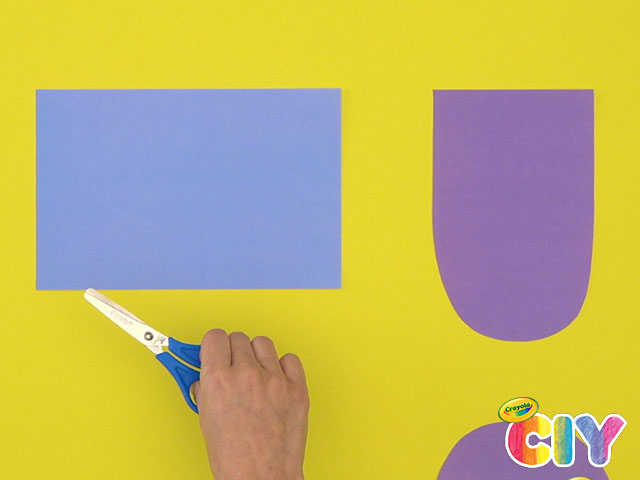 Using Crayola School Glue, attach the half-circle shapes to the rectangle.