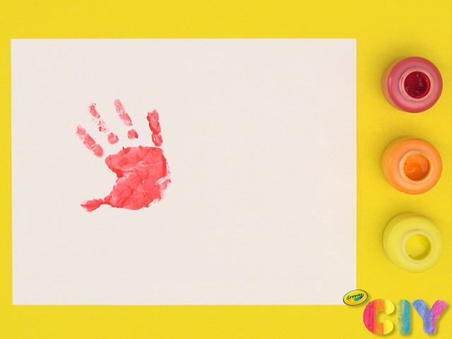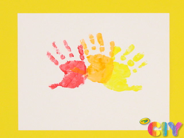 Repeat step 1 with different paint colors, overlapping handprints to create feathers. Dry 1–2 hours.