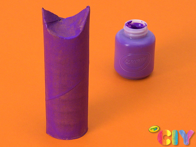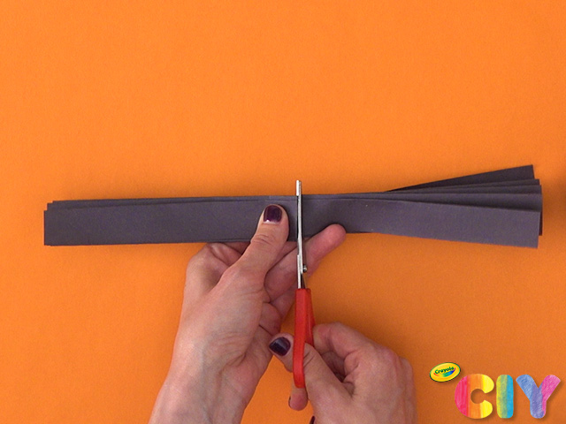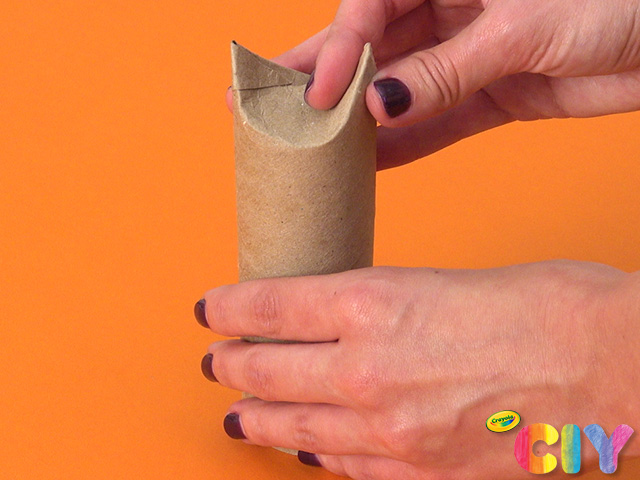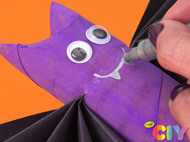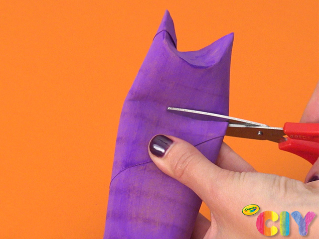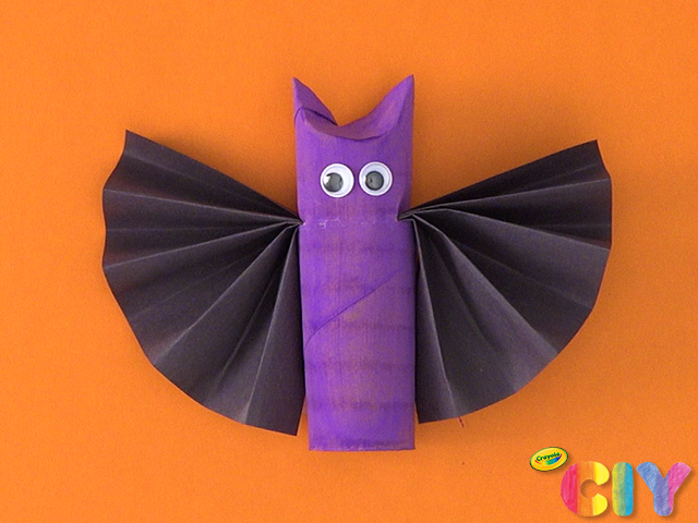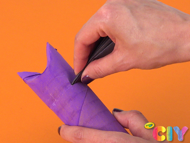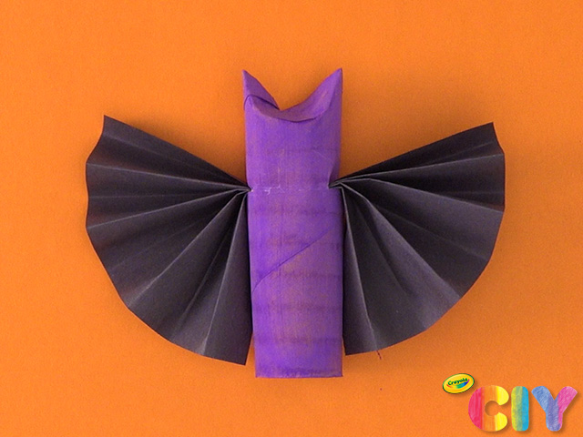 Unfold and fan construction paper out. Tape to roll as bat wing.