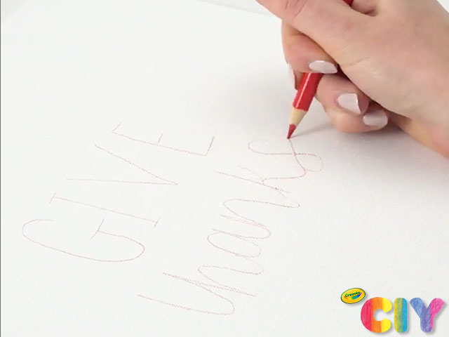Lightly outline desired fall message on canvas with colored pencils.
