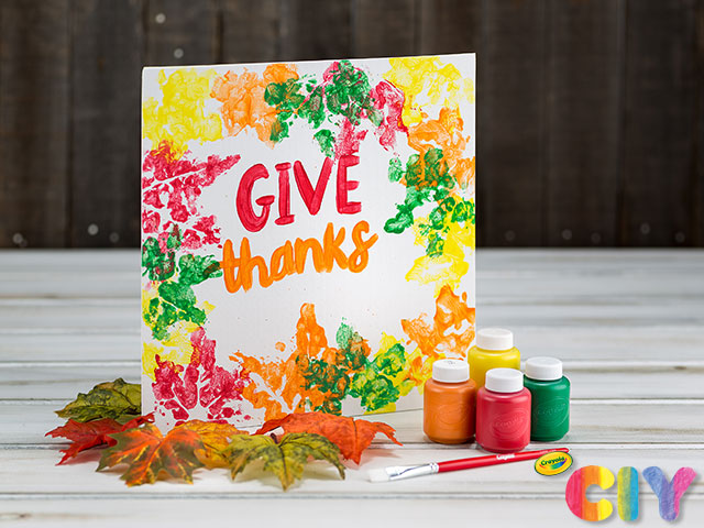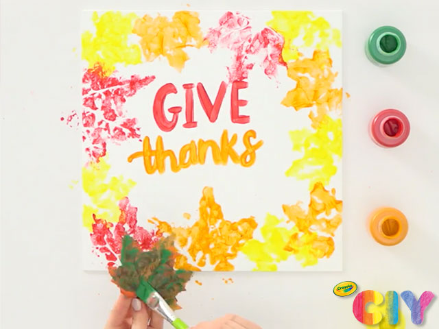 Just leaf it to us to make a DIY fall decoration! Create fall canvas art using Crayola Paint and leaves, then add your own festive phrase.