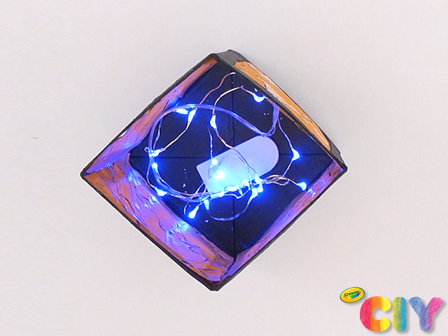 Place battery-operated string lights in carton.