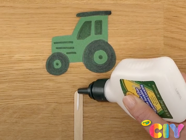 Glue animals to craft sticks with Crayola School Glue.