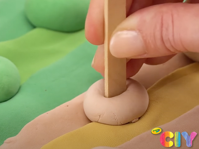 Insert craft sticks into Crayola Model Magic base to make a playful farm scene.