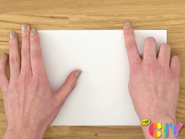 Fold construction paper sheet in half in landscape layout.