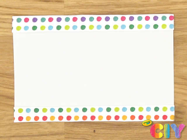 Horizontally cut 2 strips from cardstock sheet with scissors. Glue strips on outside of construction paper, one bordering the top and one bordering the bottom.