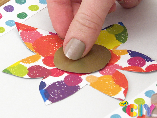 Draw, then cut out a circle on construction paper. Glue in center of flower.