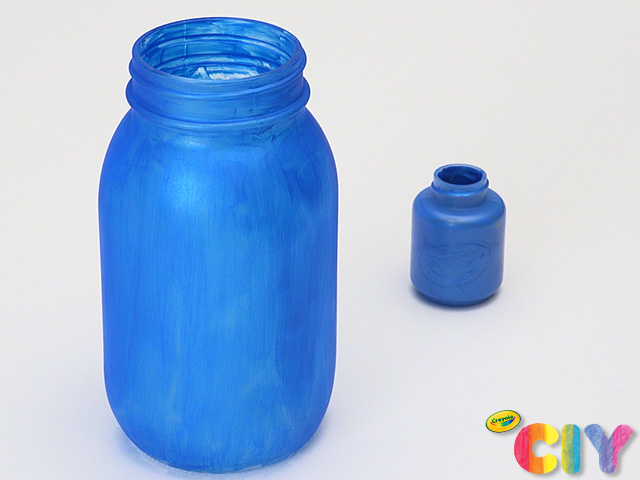 Cover mason jar with paint. Dry 1–2 hours. Add second coat. Dry 1–2 hours.
