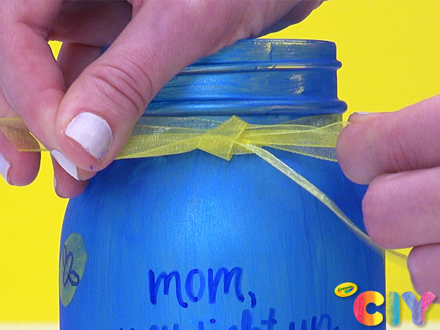 Wrap ribbon around neck of mason jar.