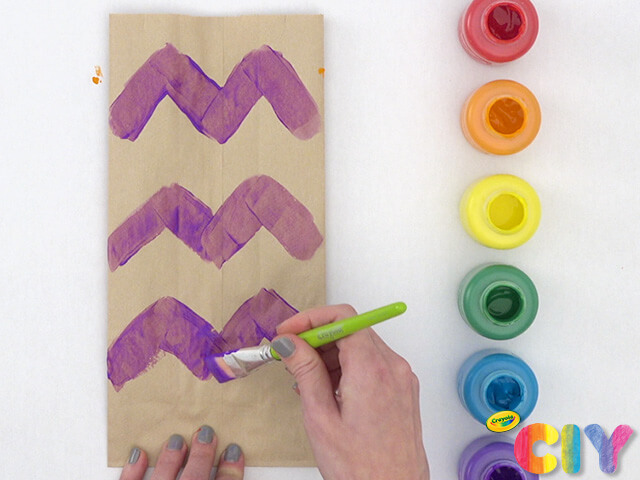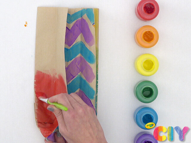 • Beyond paint and markers, decorate paper bags with Crayola Crayons and other coloring supplies.