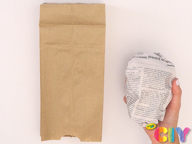 Fill paper bag approximately 3/4 full of crumpled newspaper.