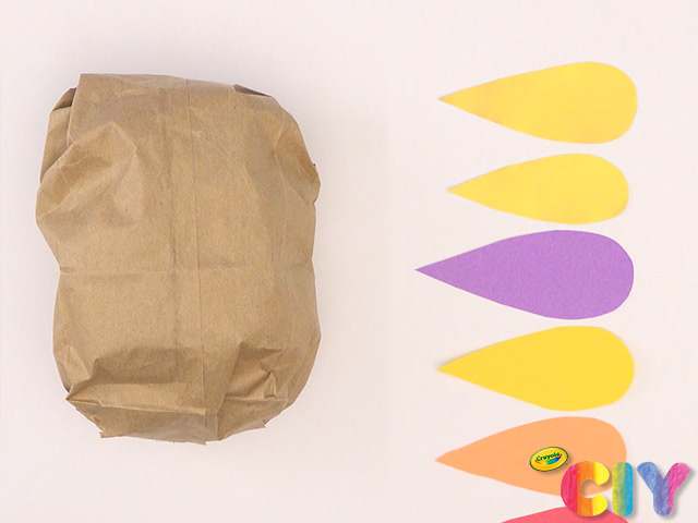 Fold down opening of paper bag and secure with tape to create body.
