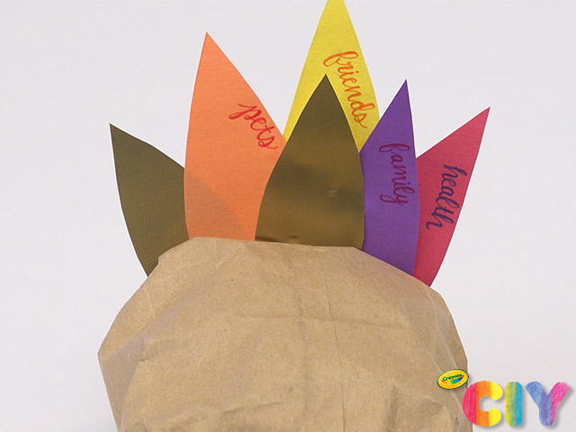 Write what you are thankful for on feathers with gel pens.