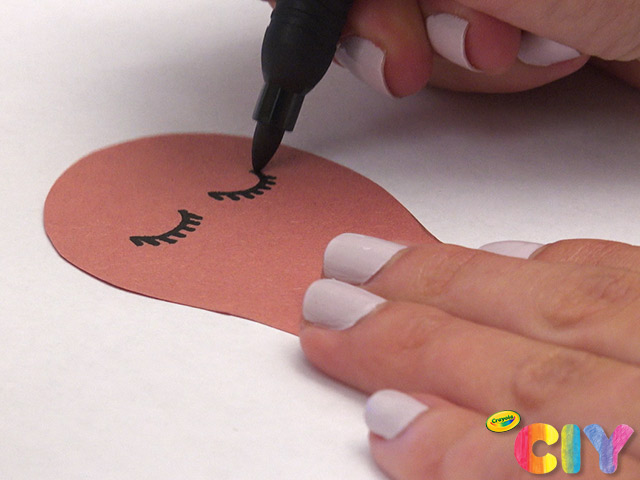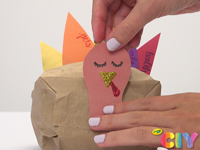 Sketch and cut out turkey head. Add eyes with marker.