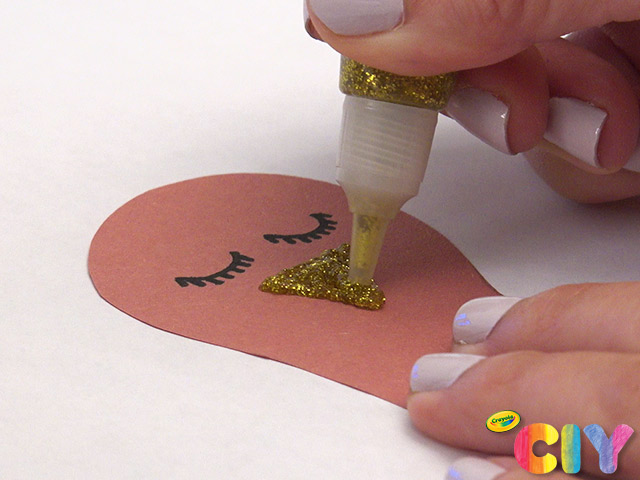 Add beak and wattle with glitter glue.