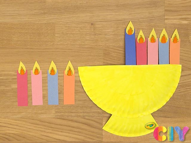 • To create throughout the holiday, stop at step 8 and add to your paper plate menorah each night of Hanukkah.