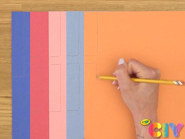 Sketch and cut out 9 construction paper candles, making 1 candle slightly taller than the rest.