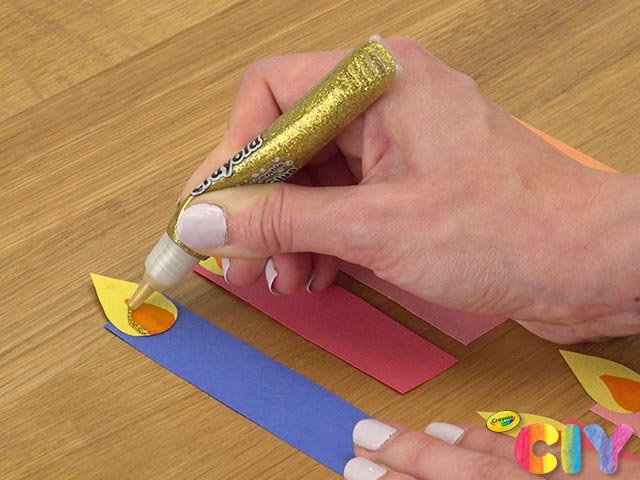 Sketch 9 candle flames on construction paper and add detail with markers. Cut out.
