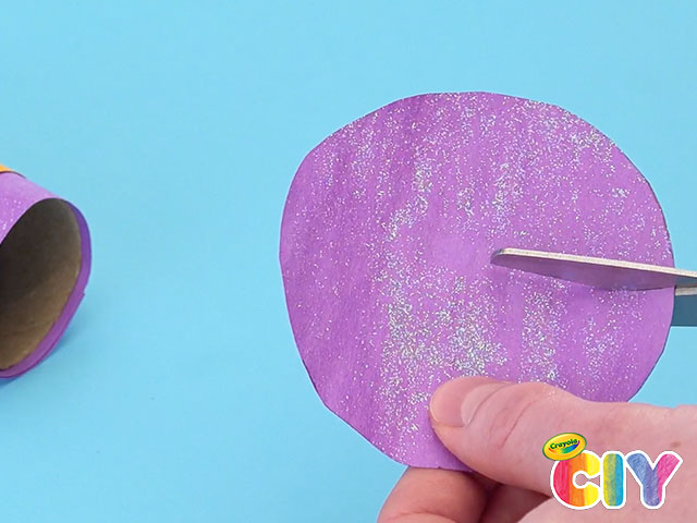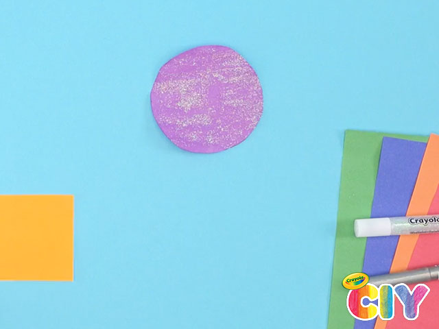 Cut 1 circle out of the painted glitter glue construction paper to create the tip of the crayon.