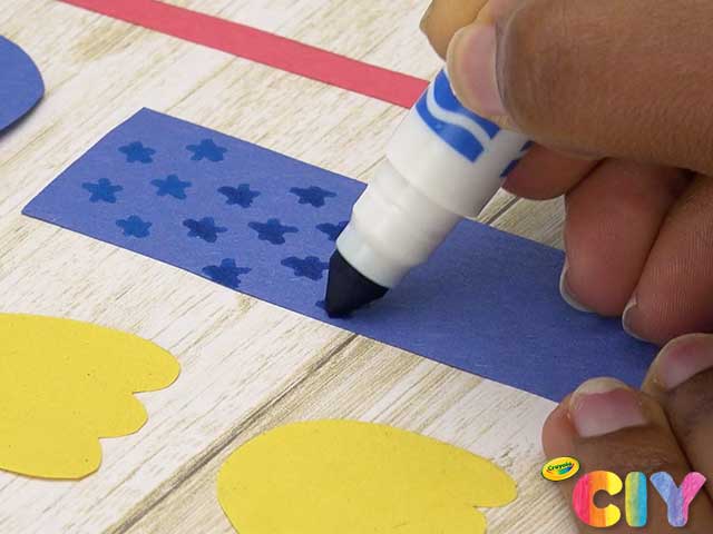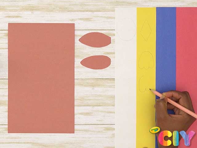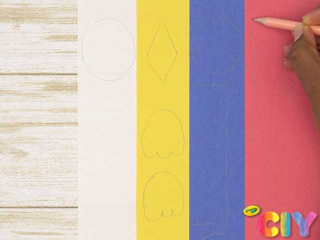 Sketch small diamond shape and eagle’s feet on yellow construction paper.