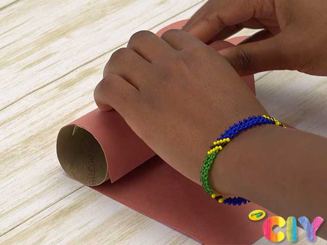 Place paper towel roll horizontally on brown construction paper and mark width at top and bottom edges of paper with pencil. Draw line connecting marks using ruler.