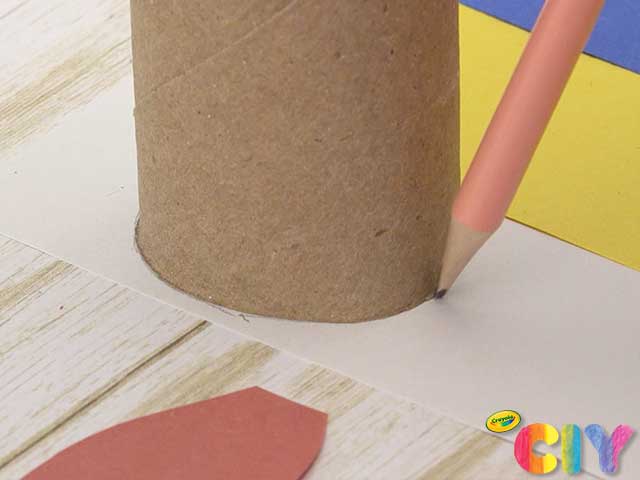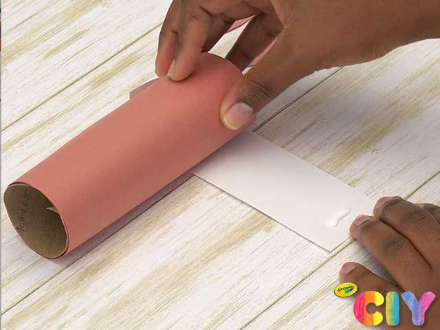 Glue white rectangle around top of paper towel roll. Glue white circle on top of paper towel roll.